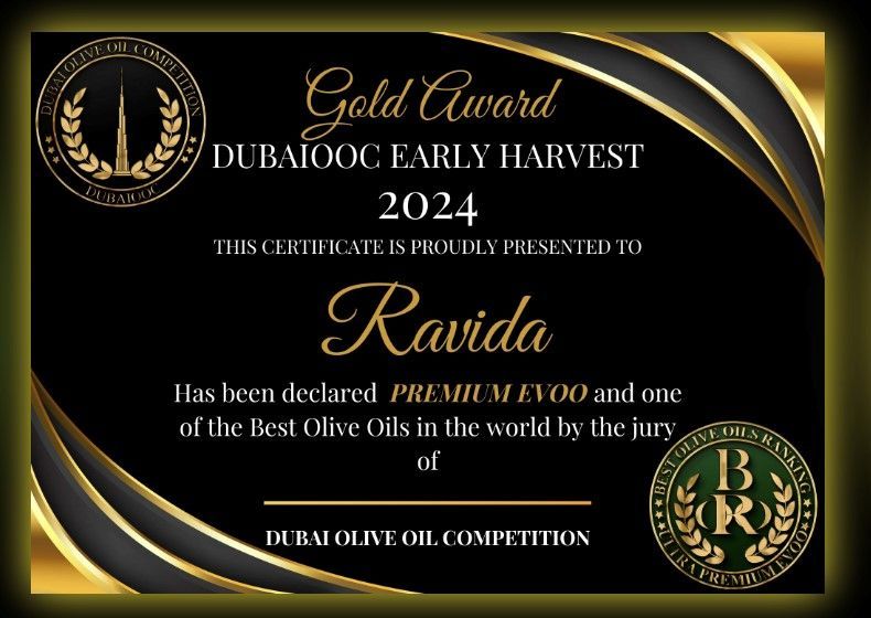 - 2024 – GOLD AWARD - at the 2024 Edition of the DUBAI International Olive Oil Award (DUBAI IOOA) in Dubai